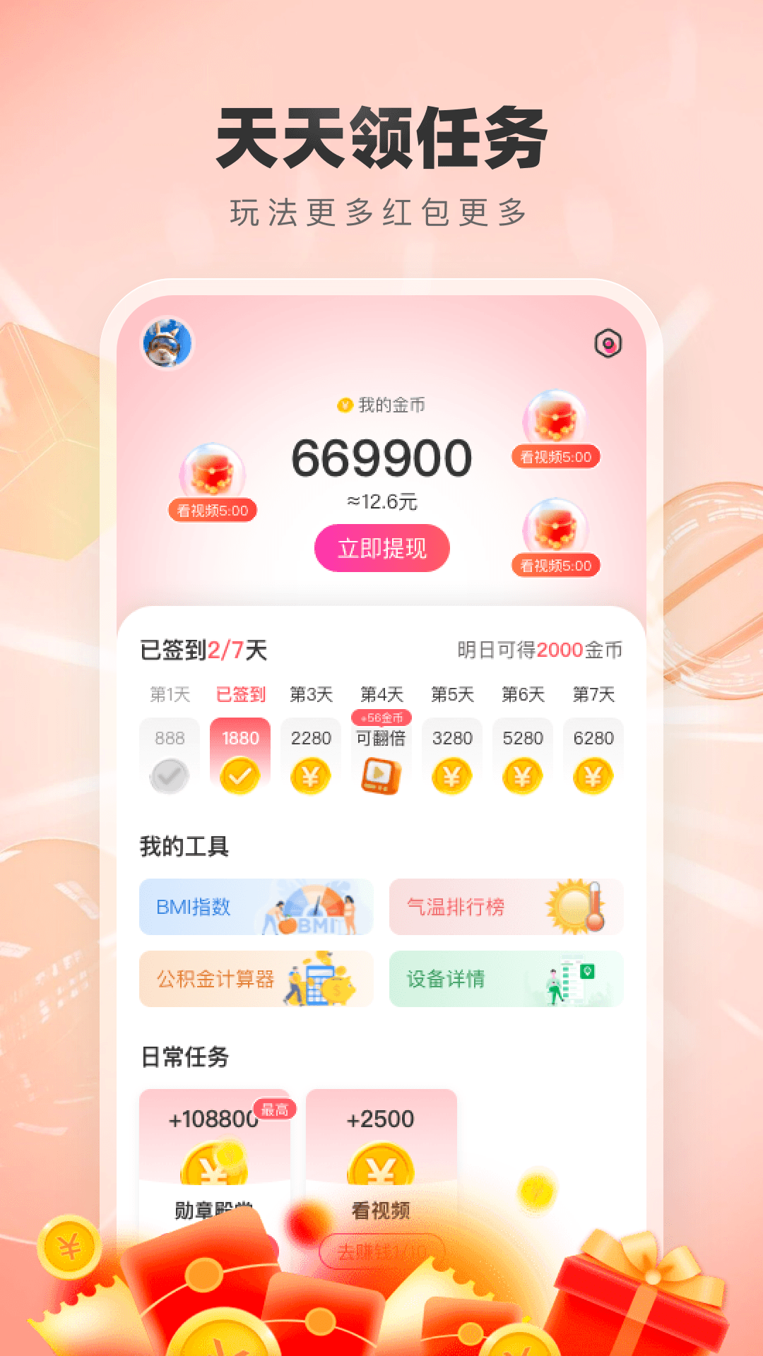 一款操作简单的刷视频领红包软件,热点解说搞笑娱乐应有尽有,超多好看短视频无限精彩,让你在刷视频的同时还能轻松领金币。